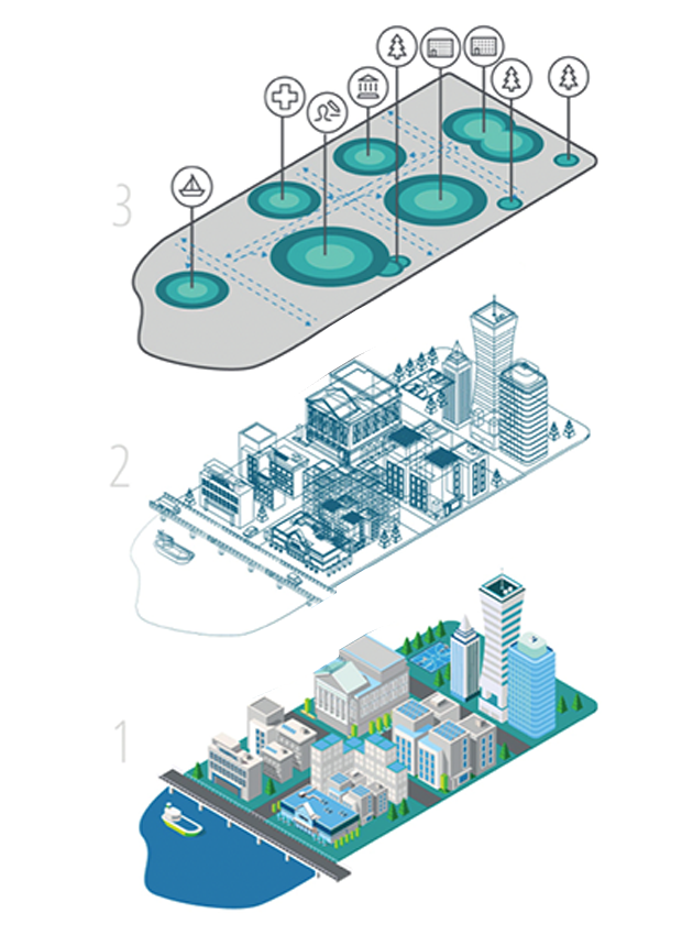 Digital information layer : Through sensorization and digital mapping of the physical world , we will eventually create a digital twin of every object in every place . Today this type digital information is primarily accessed via screens and dashboards . In the future , it will be retrieved primarily via the spatial interaction layer .